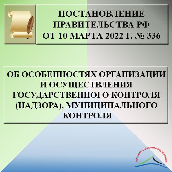 Постановление Правительства Российской Федерации от 10 марта 2022 г. № 336 «Об особенностях организации и осуществления государственного контроля (надзора), муниципального контроля»
