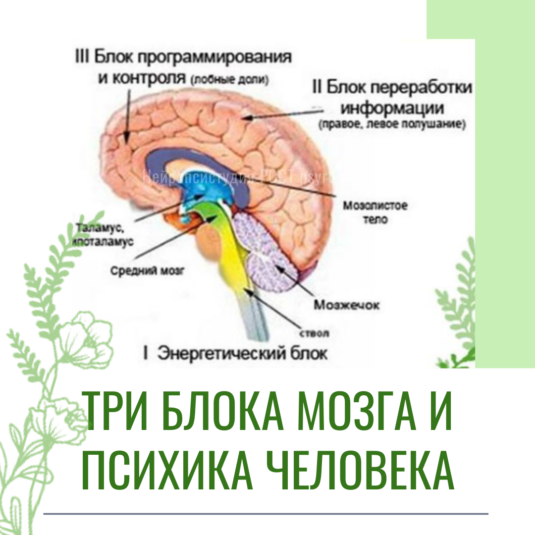 В первой половине прошлого века учёные нейропсихологи под руководством А.Р.Лурия, проведя совместно с нейрофизиологами и нейрохирургами масштабные исследования функционирования мозга человека, выделили 3 структурно-функциональных блока мозга, которые регулируют высшие психические функции (ВПФ).