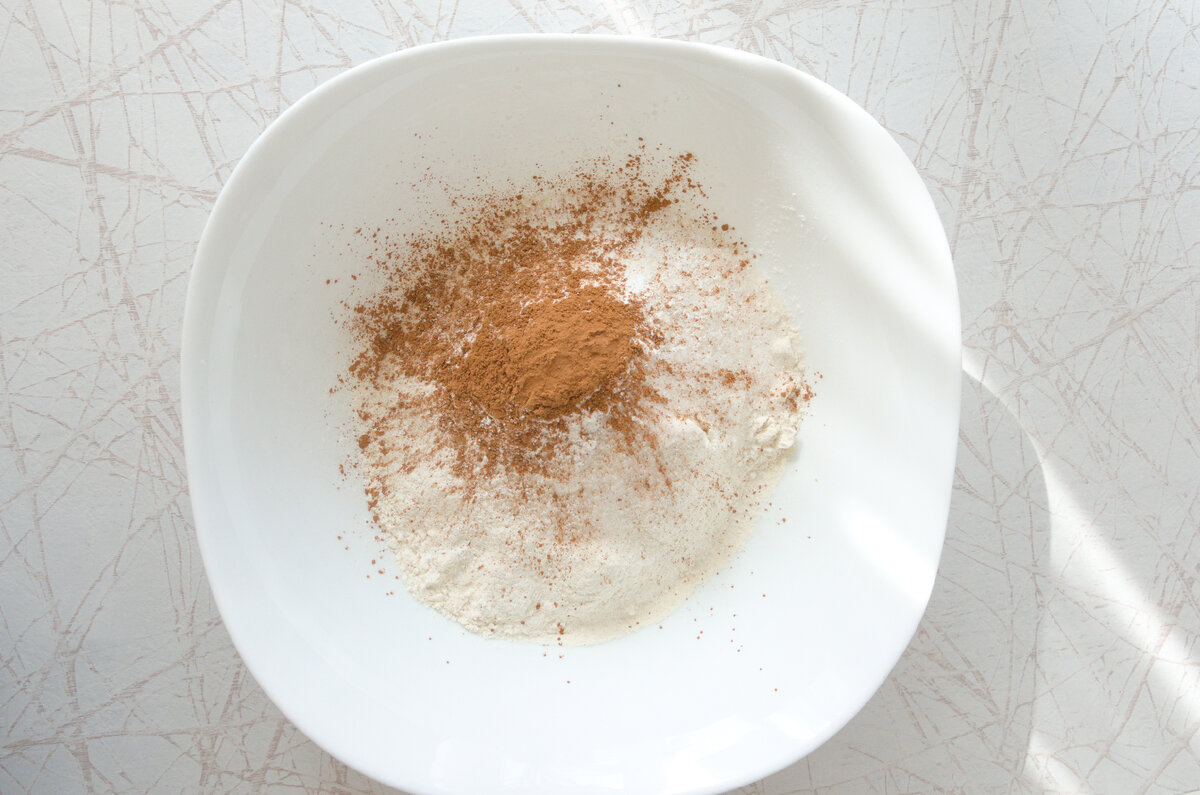 К просеянной муке добавляем сахар, соль, разрыхлитель теста и корицу. Туда же разбиваем яйца и вливаем молоко. Тщательно перемешиваем тесто до однородности. На сковороду с растительным маслом выкладываем по столовой ложке теста. Жарим оладьи с двух сторон до румяной корочки. Готовые оладьи подаём с мёдом или вареньем.