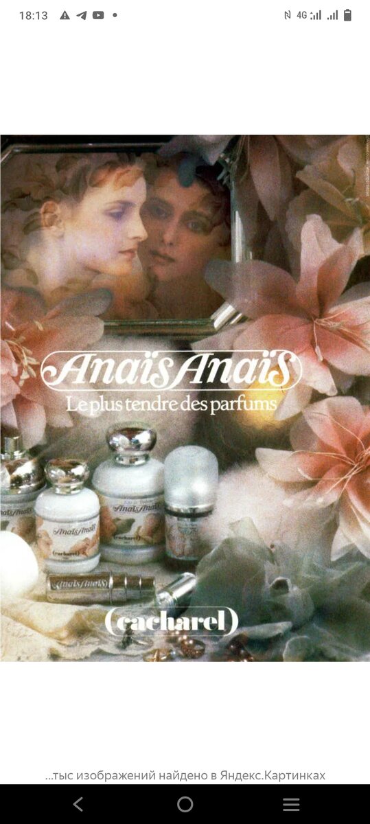 Anais Anais от cacharel Сегодня нанесла на себя и решила Вам немного поведать об этом парфюме. У меня кстати версия l'original туалетная вода. Впервые я его увидела, когда мне было 18 лет, тогда Летуалей и прочих храмов красоты не было, были торговые точки, в которые из Москвы завозили парфюм и люксовую косметику, там и происходили первые знакомства с французской парфюмерией. Я помню, что флакончик стоял на чем то, типа пьедестала и меня удивило что он не прозрачный, а словно фарфоровый. Подумала тогда, обязательно, когда заработаю первые деньги, куплю! Так что это в первую очередь аромат-ностальгия. Аромат естественно не из простых, хотя версия орижиналь это не совсем чтобы классическая версия. Парфюм практически мой ровесник, появился на свет в 1978 году, бренд очень хотел придумать доступный парфюм, который бы олицетворял нежность и юность это можно отследить по его рекламе. Парфюмерная группа из трёх Носов трудилась над его созданием три года. Анаис это кстати от греческой богини