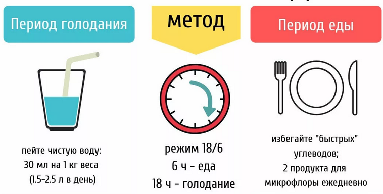 Интервальное голодание, или фастинг, – это режим, при котором в определенные часовые рамки необходимо полностью отказаться от употребления пищи, а в остальное время питаться как обычно. Прерывистое голодание – это довольно гибкая система. Каждый может сам определить себя продолжительность периода, на который планирует отказаться от еды. Существуют разные модели ИГ: 16:8; 14:10; 20:4; 23:1; 24:24; 36:12. Кроме того, многие соблюдают систему 5:2 – когда в течение 2 дней в неделю суточный калораж снижают до 500 ккал, а в остальные дни придерживаются традиционного для себя рациона. Но все же больше популярна система 16/8, где 8 часов ешь а 16 нет. При этом ограничений последнего приёма пищи нет,главное соблюдать окно 16 часов не есть, можно пить, воду, чай, и даже кофе. Суть ИГ, вне зависимости от выбранной модели, идентична: в период резкого снижения калорий для получения энергии тело использует накопленный жир. ИГ – не является чем-то новым. Это одна из древнейших систем питания. Имен