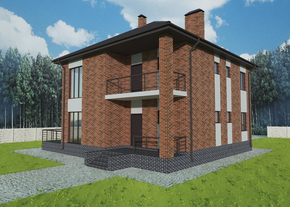 Наружная отделка – облицовочный кирпич. Строительство дома начинается с проекта. Только имея полный и подробный проект будущего дома можно быстро и грамотно построить его без ошибок, накладок и переделок. Проект поможет наиболее точно представить внешний вид дома, планировочные решения, расход требуемых материалов и конструктивные решения фундаментов, стен, перекрытий и крыши. Проект дома разработан специалистами в области проектирования и строительства загородных домов, коттеджей с учетом ГОСТ и СНиП. Проект состоит из разделов: АР (архитектурные решения), КР (конструктивные решения) и 3D-визуализации. Выполнен на бумажном альбоме ф