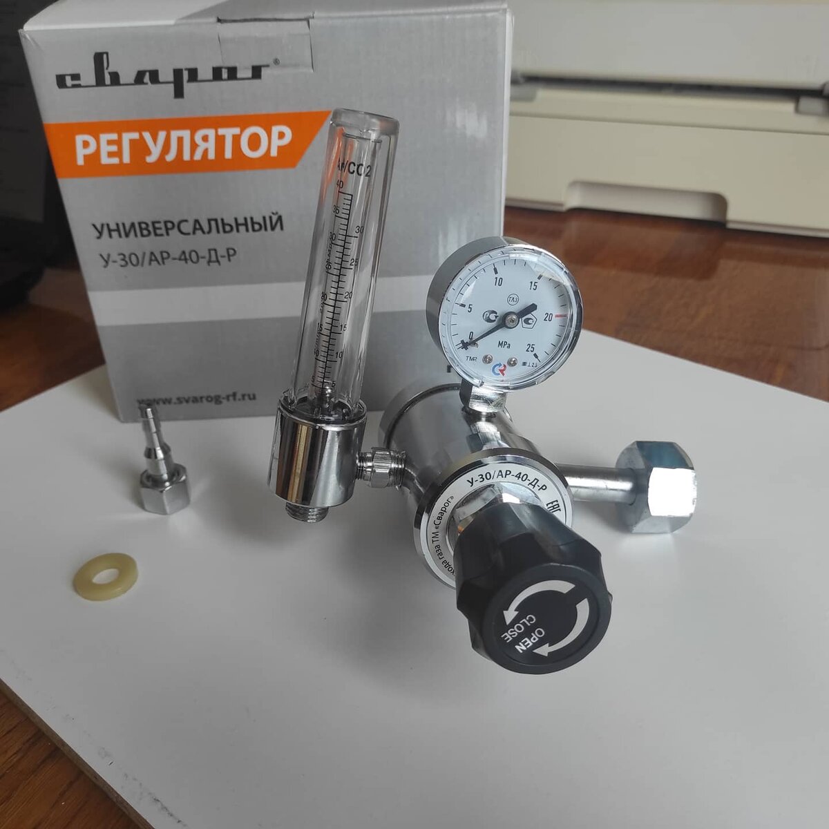 Ура! Наконец-то дошла последняя часть к моему сварочному уголку: регулятор расхода газа Сварог с ротаметром. Теперь можно начать активное освоение полуавтоматической сварки.