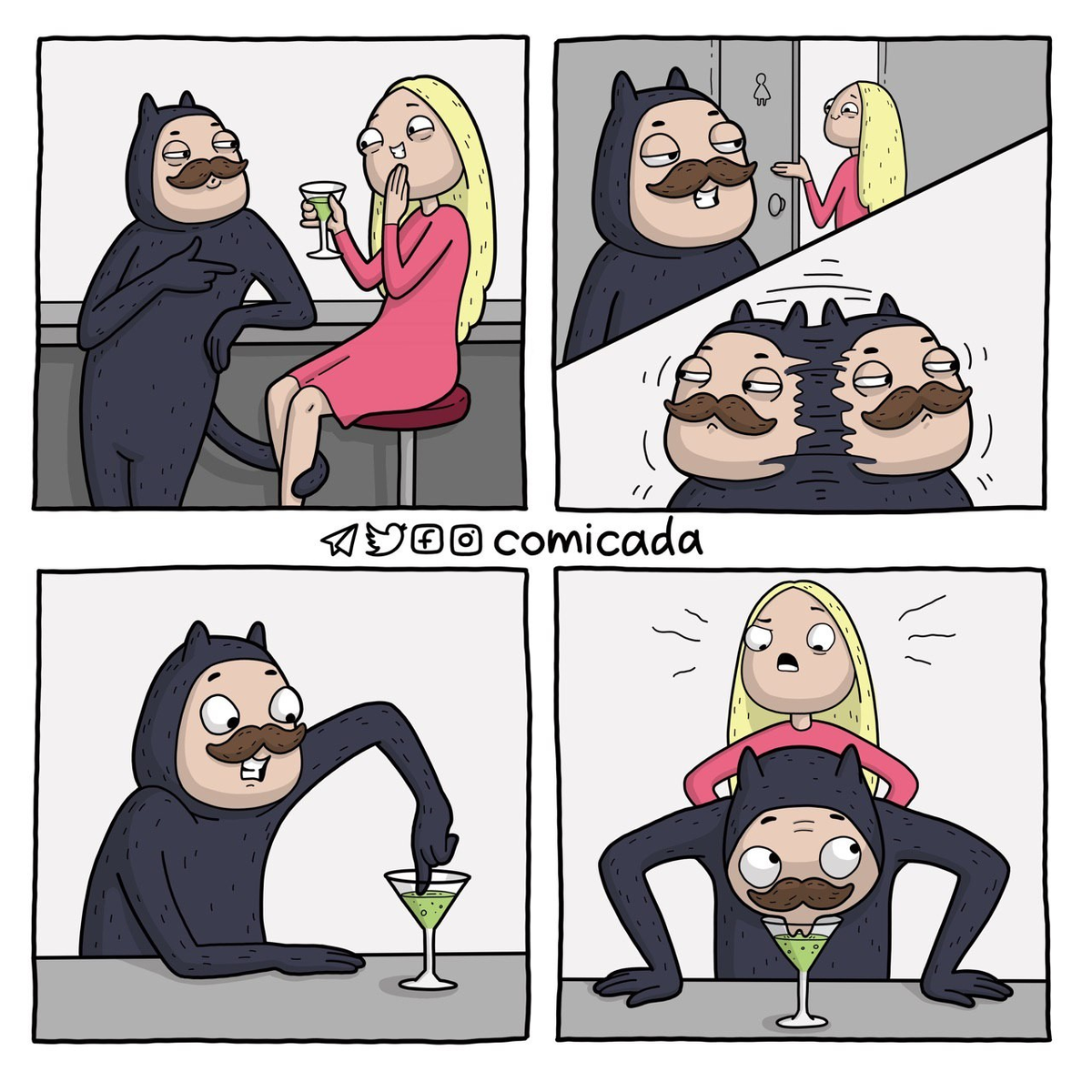 Ещё интересная серия работ Анастасии. Предыдущий пост с работами Анастасии И здесь ещё один Источник, инстаграм художницы @comicada Что бы он не делал, ты все равно любишь своего котика Дом - это место где можно расслабиться и снять маски Голуби не дадут тебе стать жирным. Делая одну маленькую глупость ты можешь разрушить чей-то мир Будь осторожен со своими желаниями Главное вовремя остановиться Проснулась, подтянулась, улыбнулась и нырнула в новый день. Однажды он отомстил Предыдущий пост с работами Анастасии И здесь ещё один Источник, инстаграм художницы @comicada Ещё интересный русский художник комиксов Если вам понравилось творчество Анастасии, ставьте лайк и подписывайтесь, если хотите увидеть ещё интересных художников от меня.