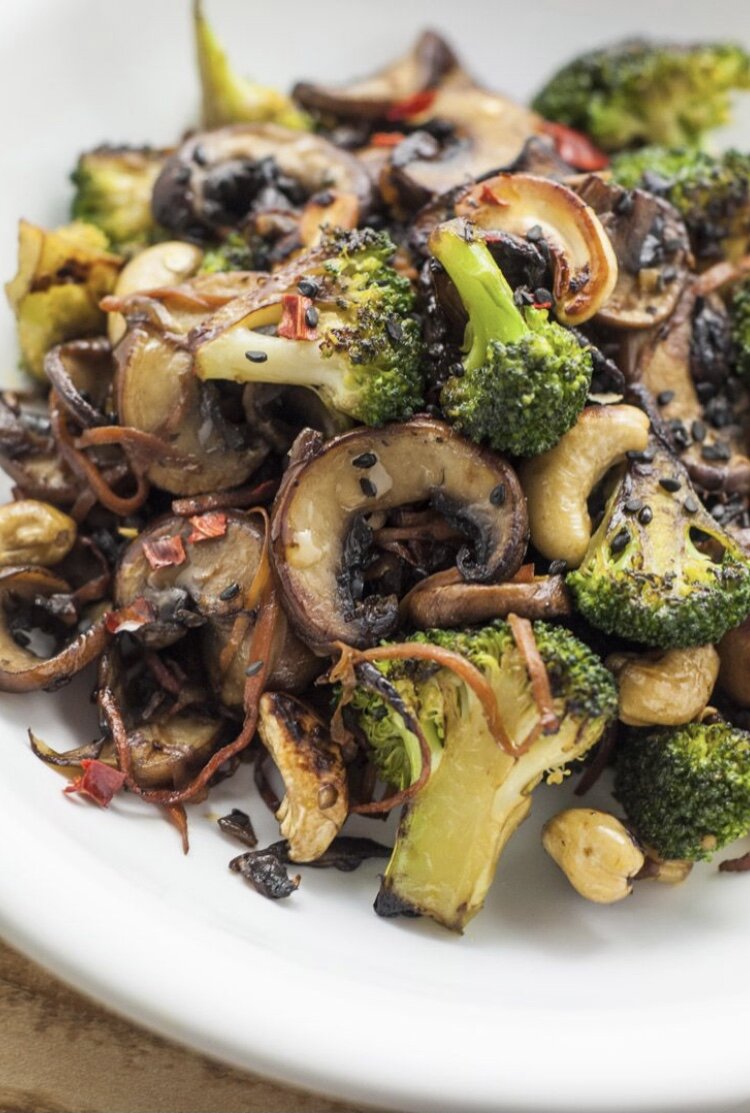 Ингредиенты: 🥦Брокколи - 2 стакана 🥕Моркови - 1/2 стакана 🧄Чеснок - 3 зубчика 🌱Свежего имбиря - 2 ч.л. 🍄Грибы - 2 стакана 🧅Красного лука - 1/4 стакана 🥣Овощного бульона - 1/4 стакана 🍶Соевого соуса с низким содержанием натрия - 2 ст.л. 🥥Кокосового сахара - 1 ст.л 🌶Красного перца - 1/4 ч.л 🥣Семян кунжута - 1 ст.л 🍶 Рисового винного уксуса - 2 ст.л 🥜Кешью - 1/4 стакана
