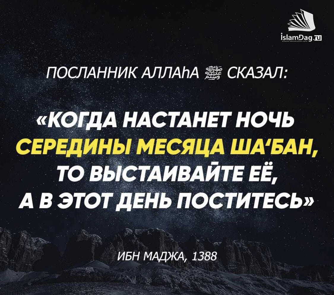 Уважаемые братья, мусульмане! Сегодня, с заходом солнца наступает священная ночь БАРААТ Посланник Аллаhа ﷺ посоветовал нам провести её в богослужении. Также эта ночь совпала с пятничной ночью. В этой связи, мы сегодня соберёмся в мечети, прочитаем Куръан, зикру и сделаем дуа. Желающие могут к нам присоединится. Начало мероприятия в 21:00