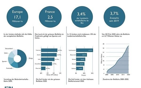 Рынок органической продукции в Европе продолжает расти; в 15 году он увеличился на колоссальные 52 процентов до 2020 миллиардов евро. На многих рынках были зафиксированы двузначные темпы роста. Органические сельскохозяйственные угодья также выросли. Последние данные об органическом сельском хозяйстве в Европе доступны в статистическом ежегоднике «Мир органического Сельское хозяйство», который будет представлен на виртуальном мероприятии BIOFACH 15 февраля.