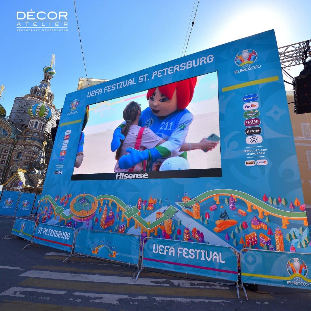 В Петербурге холодно, а так хочется тёплого солнца! Предлагаем вам согреться впечатлениями от одного из самых значимых проектов прошлого лета — фанзона EURO 2020 на Конюшенной площади. В 2018 году мы отвечали за оформление фанзоны для ЧМ по футболу и рады, что тот успешный проект обеспечил нам доверие в сфере международных спортивных событий. Менеджер проекта Дмитрий Калинин: «Декор-ателье оформило пространство фанзоны от сценического комплекса до навигационных элементов. Среди объектов: главная сцена, башни дублирующих экранов и задержки звука, входные зоны, заборы по периметру и фан-барьеры, шатры инфопоинта и навигационные элементы. Особенность таких проектов — тщательный выбор всепогодных материалов, рассчитанных на долгое пребывание на улице. Все объекты такого типа имеют усиленный конструктив, способный выдержать ветровые нагрузки». Ждем нового сезона open air мероприятий, и благодарим за доверие наших партнеров, компанию BCA marketing. #декорателье #decoratelier #евро2020 #евро