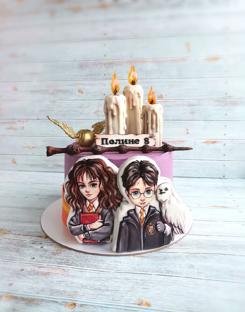 На первый взгляд всё кажется нереально сложным, но на самом дело это не так)) Первое, что бросается на глаза это конечно же пряники) Данные пряники сложны в исполнении, здесь больше нужен художественный опыт. Кто только начал заниматься росписью, то лучше выбрать изображения полегче) Самый простой выход- фотопечать, но вид торта конечно изменится. Заливка глазурью) Если присмотритесь, то можно увидеть провалы айсинга на лицах персонажей) Это всё живой белок. Сейчас работаю только с сухим, про это будет отдельная тема)) Отрисовка кистью пряников такой сложности у меня занимает примерно 1 час на штуку. Зато какой результат)) А здесь заметна большая разница в прорисовке)) всю жизнь рисую, но все равно продолжаю учиться)) Промежуток между работами всего 5 месяцев Остальной декор)) Ну со снитчем, палочкой и особенно табличкой все понятно))) Сделаны полностью из мастики. Внутри волшебной палочки шпажка, на которую уже лепились формы и текстура, работа с аэрографом - добавление теней