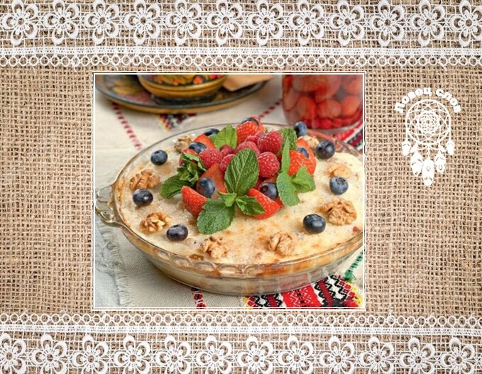 Верхним обязательно должен быть слой каши, и получался такой своеобразный то ли торт, то ли слоёный пирог. Сверху его смазывали сметаной и ставили в печь для запекания до золотистого цвета. Или же украшали свежими фруктами и ягодами и убирали на ледник. Такую гурьевскую кашу можно было есть и горячей, и холодной. Можно резать кусками как пирог или делать порционно в небольших креманках.