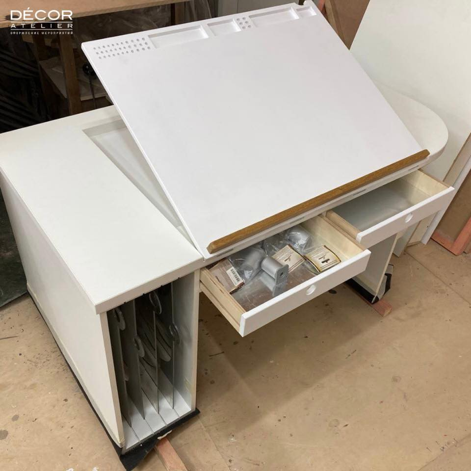 Сделать кастомную мебель? Легко! К нам обратились с заказом — сделать стол-мольберт для художницы. Самым важным и сложным элементом этого стола являются упоры для подрамника, которые позволяют ему складываться в плоскость стола. Так этот стол становится универсальным трансформером и полезным предметом интерьера. Тот, что на картинках, уже радует свою хозяйку функциональностью — в нём много специальных ящиков под инструменты и работы художника. Хотите себе такой? Присылайте запрос на почту info@decor-a.ru #декорателье #decoratelier #столмольберт #функциональнаямебель #рабочаямебель #столхудожника #мебельдляработы
