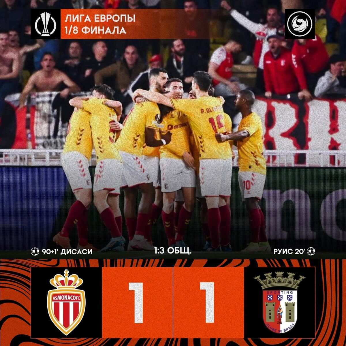 😒 «Монегаски» вылетают 🇫🇷Монако 1:1 Брага🇵🇹 (1:3 общ.)