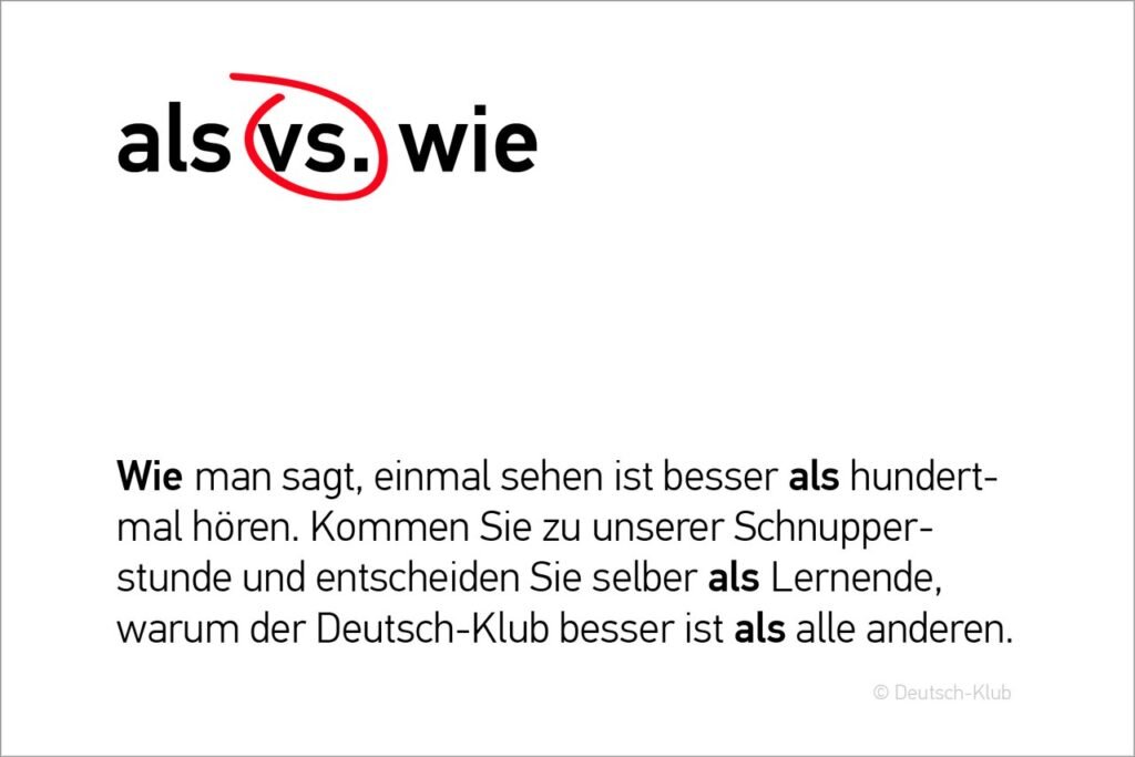 Мы с Татьяной часто видим, как у людей происходит короткое замыкание на теме als und wie. Хорошо, если короткое. Как выяснилось, короткое замыкание случается из-за нарушения изоляции токоведущих элементов. В нашем случае такими элементами выступают родной русский и иностранный немецкий. Во избежание замыкания поправим изоляцию, чтобы элементы не соединялись. Зайдем с нужного конца цепи: в немецком wie, которое используют при сравнениях, означает “как”, так же как и вопросительное wie. В этом смысле в немецком все так же просто, как и в русском (genauso… wie). А вот если на одном конце цепи напряжение меньше, чем на другом, грамматически это хорошо, а фактически не очень. На немецком эту же мысль следует передавать при помощи als. Что необходимо изолировать особенно тщательно, так это русское “как”, которое означает “в качестве, в роли кого-то”. Мы как учителя, работающие по коммуникативной методике, рекомендуем не переводить про себя фразы с русского на немецкий, потому что это опасно