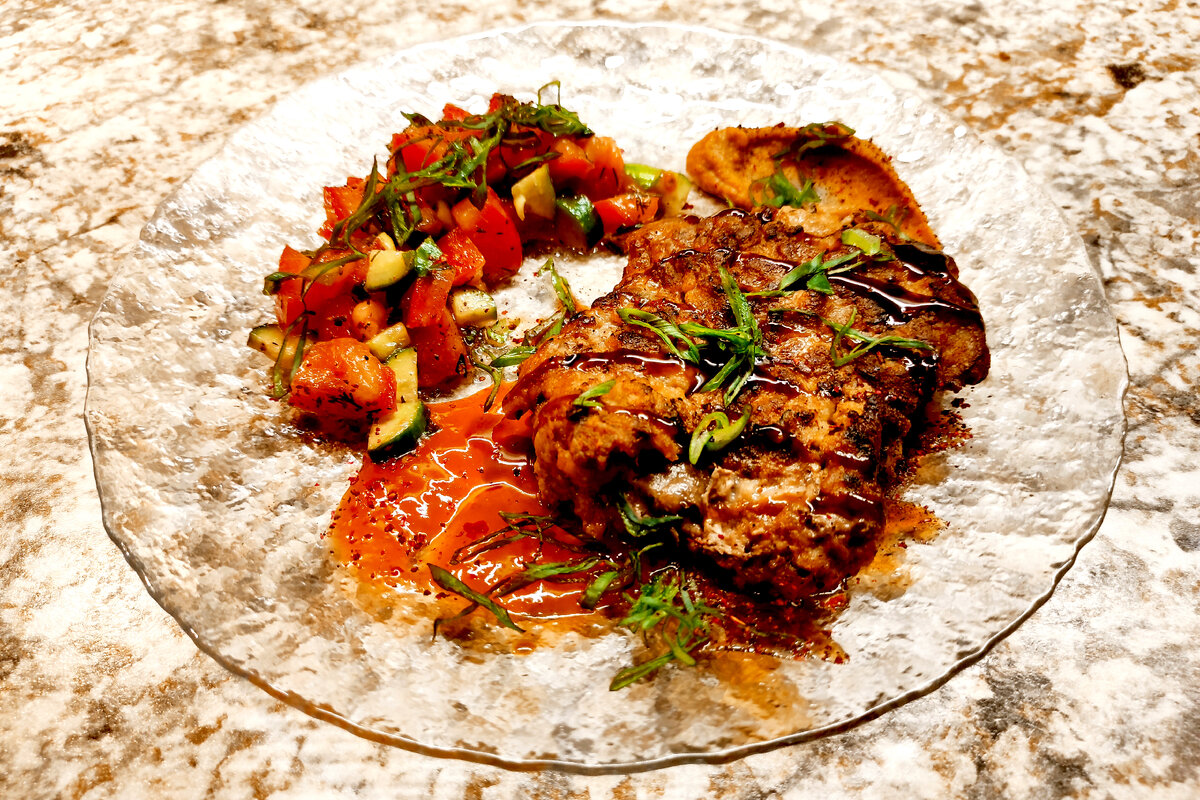 Этот способ приготовления отбивных я придумал сам. Скорее всего я не первый кто делает это блюдо по подобной технологии, но честно вам скажу я ни у кого не подглядывал. Для приготовления потребуется свинина. Возьмёте шею будет более жирно, корейка будет суше, но сухим мясо не будет однозначно, за счет технологии приготовления. У меня свиной окорок, в этом куске 1,4 кг. Делим мясо на порционные куски. Важно убрать по возможности все жилы, пленки и излишки жира. Вот так у меня получилось 7 порционных кусков. Если у вас чистое филе (карбонат или вырезка) отбивать мясо не обязательно, достаточно будет надсечь ножом мясо крест-накрест с двух сторон, не прорезая кусок мяса до конца. Как показано на фото ниже. В случае если взято мясо с прожилками (шея, лопатка, окорок) следует хорошо отбить мясо. Отбиваем через целлофановый пакет, дабы не запачкать кухню мясными брызгами. Далее нам понадобится: Два яйца, два зубчика чеснока (их нужно будет выдавить или протереть на мелкой терке), пол столо