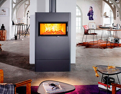 Дверцы печей чаще всего делаются из однослойного термостойкого стекла (так называемой витрокерамики). В этом случае тепло в комнату будет активно излучаться через стекло. Двойное остекление пропускает меньше тепла, за счет чего повышается температура сгорания топлива. Теплоотдача у таких приборов осуществляется в основном за счет конвекции или системы водяного отопления.