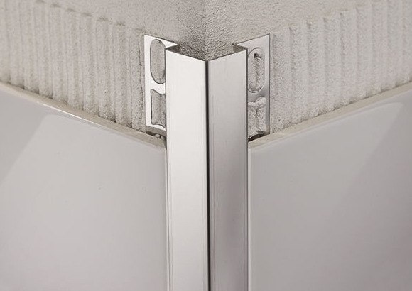 Еще такие вставки называются "тримы". Они представляют собой профиль из пластика или металла, который укладывается вместе с плиткой на плиточный клей. Данный способ самый надежный, но может не всегда сочетаться с дизайном помещения. Лучше всего использовать уголки из полированной нержавеющей стали, они наиболее долговечные и не создают ощущение "дешевого ремонта". 2. Подрезка края плитки под 45 градусов. Данный способ позволяет сделать угол, который будет выглядеть почти как единое целое, однако такая работа требует высокой квалификации рабочих и стоит заметно дороже. Также угол плитки после его спила становится очень хрупким, и может повредиться от малейшего удара. Срез плитки под 45 градусов еще и травмоопасен — угол будет достаточно острым, и может стать причиной серьезных травм при ударе об него. 3. Укладка плитки "внахлест".