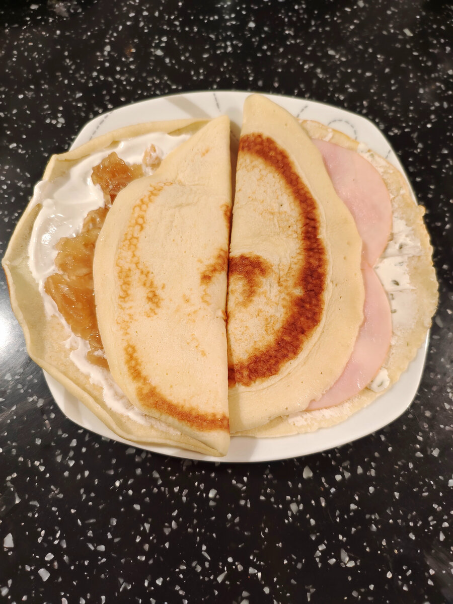 Основа блинов всегда одна, это: Даже без добавок такой блин очень вкусный - это отличная основа для любых начинок (творог, сыр, рыбка, варенье, сметана, мяско) Первый вариант - это добавление в тесто мелко натертой небольшой моркови и корицы. После все тесто пробивается блендером и выпекается либо один большой, либо два маленьких (два удобнее - меньше шансов порвать). К такому блину идеальная начинка - это банан и шоколадная паста (можно и без нее). Второй вариант - добавление половинки банана в тесто, но тогда муки надо немного меньше -20 гр. Банановый блин пахнет бесподобно! Пеку, пока мужа нет - иначе мне ничего не достанется.)) К нему очень вкусно либо шоколадная паста, либо творог с какао, либо солененький сыр. Как выпекать: выпекаю на огне чуть выше среднего на разогретой, смазанной небольшим количеством масла сковородке под крышкой. Когда верх прихватится - можно переворачивать. #рецепт блинов