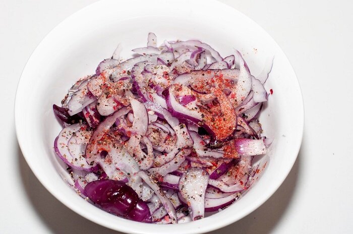 Один из самых простых и банальных рецептов, но очень вкусный. И всего один ингредиенты - это лук. И идеале, лук должен быть салатных сортов - белый или красный, но и из обычного репчатого тоже можно приготовить. Думаю, что данный рецепт совсем скоро побьет все рекорды у россиян, так как лук вроде бы еще не подорожал. В связи с последними событиями, мне пришлось завести свой канал на РуТуб. Смотрите любимые рецепты и подписывайтесь: Буду признательна за лайк, комментарий и подписку на канал КУЛИНАРНЫЙ ТЕХНИКУМ на РуТуб. Ингредиенты Еще можно при желании добавить в этот салат сваренное вкрутую яйцо и свежую зелень. Но это по возможности. Пошаговое приготовление Лук нужно очистить и нарезать тонкими полукольцами. Если любите лук, то кольца могут быть и не очень тонкими. Лук переложить в дуршлаг и ошпарить крутым кипятком. Так же можно залить лук крутым кипятком в чашке и оставить там на 1 - 2 минуты. Но НЕ дольше, так как лук сварится и не будет аппетитно хрустеть. Затем лук переложи