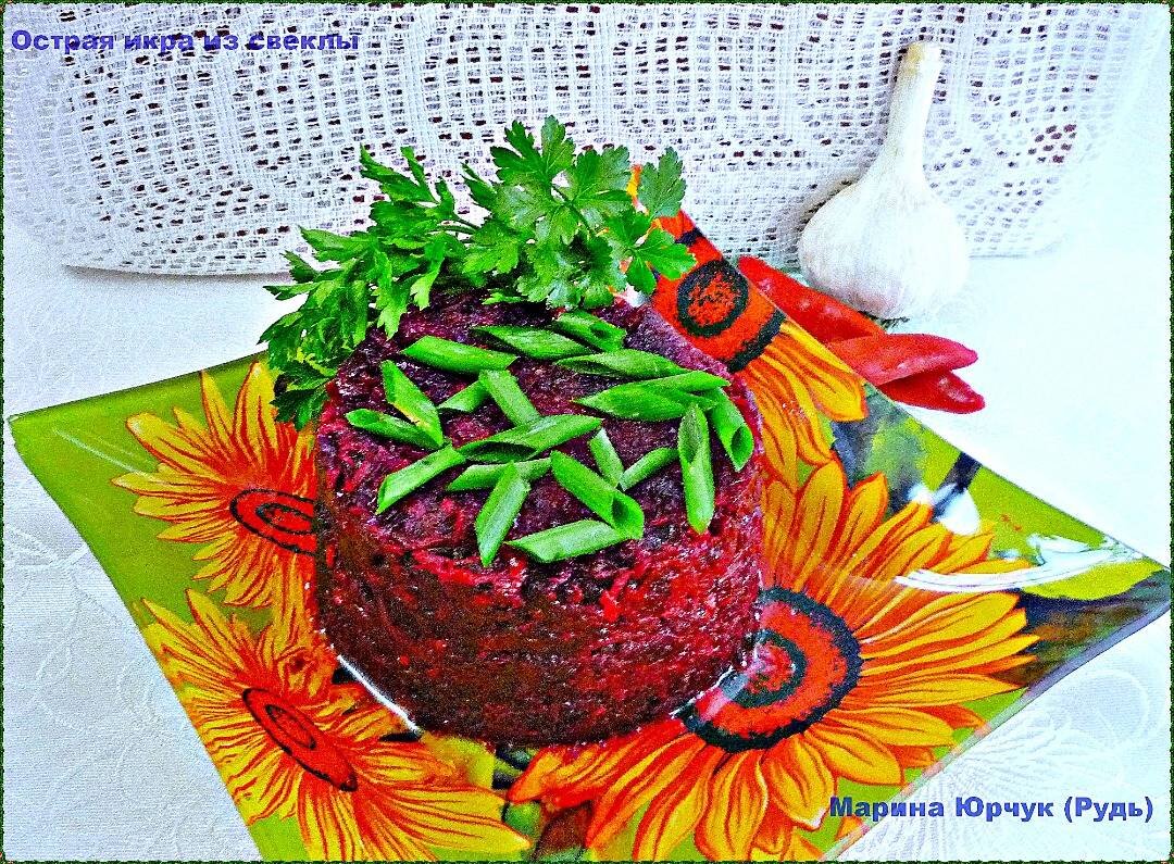 #пост Такая икра из свеклы отлично походит к любому второму блюду, а к первому — на хлебушек намазать. Степень остроты легко регулируется в этой икре, можно вообще сделать не острой. Я добавила совсем чуток острого перца, икра вышла слегка острая, как я и люблю, а любителям острых ощущений можно и пол стручка небольшого. Кому нельзя совсем острое — можно и без перца, разумеется, но тогда хотя бы зубчик чеснока. Ингредиенты: свеклы, моркови, луковицы, чеснока, острого перца, томатной пасты (или 100 г тертых помидор), сахара, соль , уксуса 9% (или 2 ложки сока лимона) -для сохранения бордового цвета, Я еще добавила ½ чайной ложки сладкой паприки Способ приготовления: Свеклу нужно заранее отварить или запечь до полуготовности. Можно отварить раньше, отваренная свекла может несколько дней лежать в холодильнике. Можно отварить на пару в мультиварке, выставить время 30 минут. Обжарим слегка мелко порезанный лук, добавим морковь, тертую на мелкую терку, жарим на среднем огне четыре - пять мин