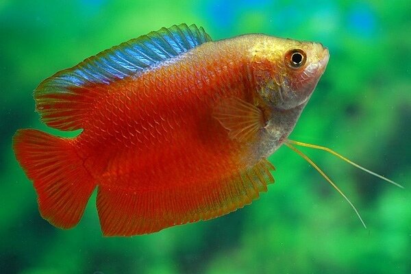 Самка откладывает до 800 яиц, по окончании нереста её следует немедленно пересадить обратно в общий аквариум. Самец остаётся возле гнезда охранять кладку, в это время он становится очень агрессивным, даже по отношению к самке. Мальки появляются в течение дня, а уже на третьи сутки начинают свободно плавать, значит пришло время самцу покинуть нерестовый аквариум.Огненный Гурами или Огненный лялиус (Trichogaster lalius), принадлежит семейству Osphronemidae. Очень красивая и выносливая рыбка, выведена искусственно путём планомерного скрещивания нескольких видов на протяжение нескольких поколений для закрепления приобретённой расцветка.