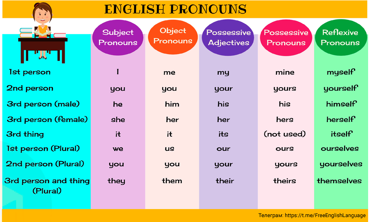 1. личные местоимения в именительном падеже (субъектные местоимения, subject pronouns);