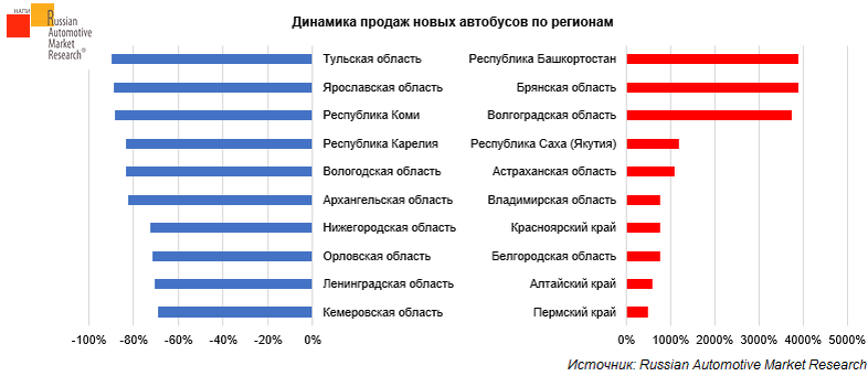 Согласно данным Russian Automotive Market Research продажи новых автобусов в феврале 2022 г. составили 1,5 тыс. ед., что на 106,2% больше результата февраля прошлого года. Лидерами по темпам роста в феврале 2022 года стали Республика Башкортостан, Брянская и Волгоградская область, где продажи автобусов увеличились почти на 4000,0%. Регионы с наибольшим снижением продаж - Республика Коми, а также Тульская и Ярославская область, где закупки автобусов сократились более чем на 88,0%. Пожалуйста, оцените эту статью и подпишитесь на канал или поделитесь ссылкой на него в социальных сетях, если считаете его интересным.