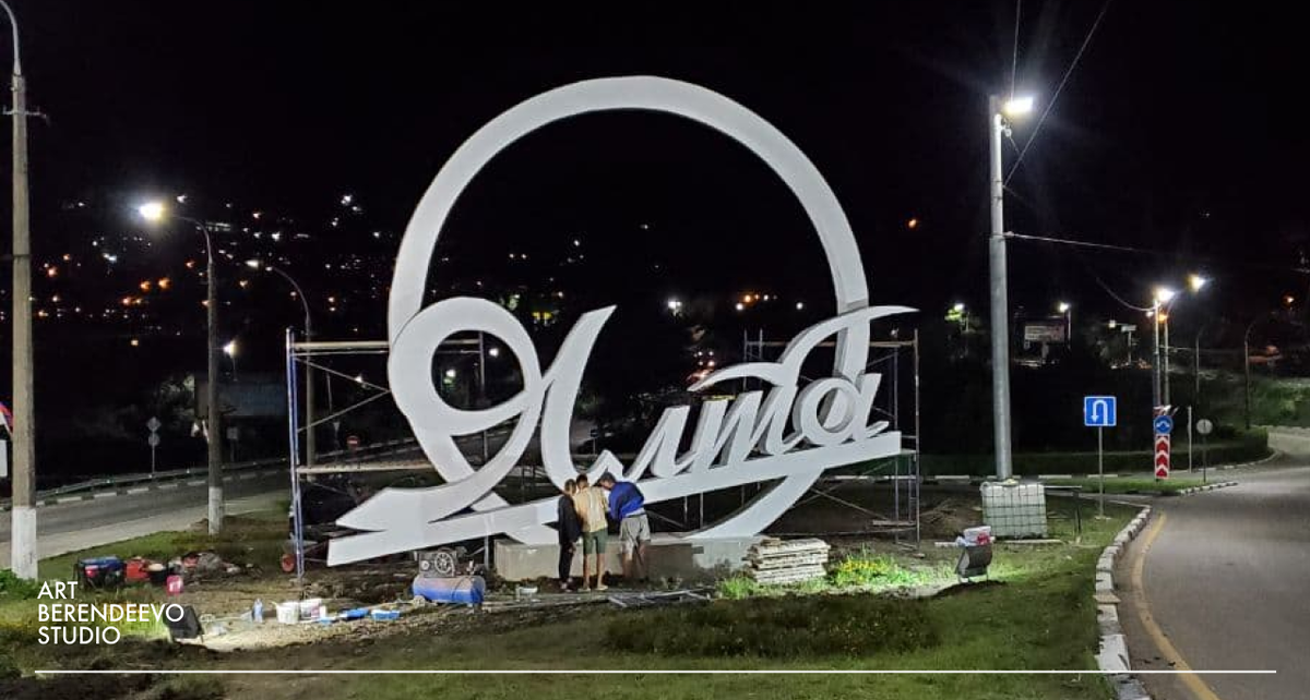 В 2021 году команда студии ART BERENDEEVO взялась за сложную и ответственную задачу от руководства полуострова Крым и администрации Ялты: спроектировать, изготовить и установить новую стелу на самой оживленной транспортной развязке Ялты ― на въезде в город со стороны Симферополя. РАБОТА НАД ЭСКИЗОМ Перед началом производства дизайнеры нашей студии р