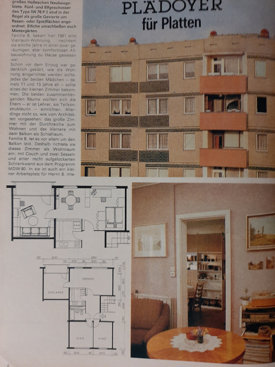 Давайте посмотрим как предлагали обустраивать квартиры в ГДР и насколько эти решения актуальны сейчас? В моем архиве есть несколько старых журналов и глядя на них можно найти интересные решения, которые не потеряли своей актуальности. В этой статье я предлагаю посмотреть как выглядел дизайн тех лет и какие планировочные решения были в моде. Перепланировок не было Сейчас перепланировкой квартиры никого не удивить, часто меняют расположение внутренних перегородок. Но в те времена чаще применяли другое решение - зонирование при помощи мебели. На этих страницах можно увидеть, как при помощи расстановки мебели создавали новые функциональные зоны и разграничивали пространство. Например, в гостиной организовали удобный рабочий уголок, для этого поставили стол за угловой диван. Это позволило разграничить пространство и максимально задействовать его. Также часто мы видим примеры мебели, которая может трансформироваться или создает дополнительные места для хранения. В условиях маленьких площадей