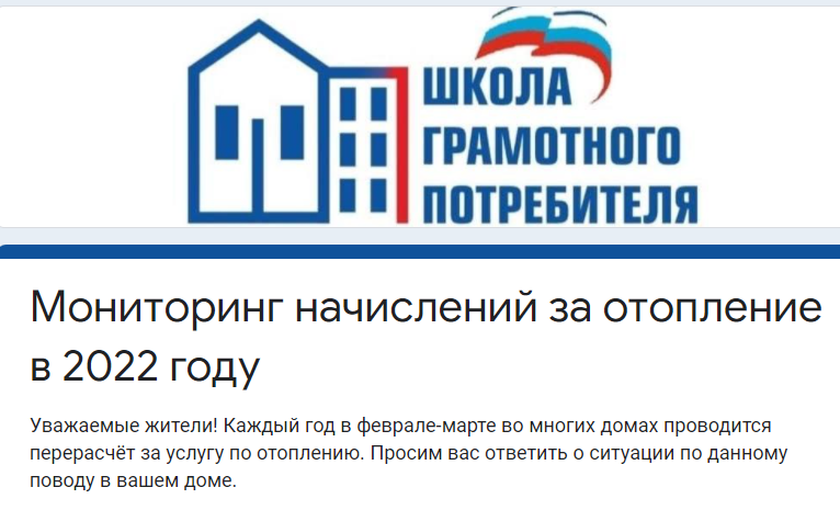 В Удмуртии, как и в других регионах России, проводится мониторинг начислений за услуги отопления. Принять участие в нем могут все желающие – потребители услуг ЖКХ, проживающие в многоквартирных домах. Для этого нужно заполнить форму по ссылке: https://clck.ru/e4wKY «В первом квартале года производится корректировка платы за отопление, и, чтобы сделать ее как можно более прозрачной, было принято решение проверить обоснованность начислений, – сообщил Александр Евсеев, председатель Общественной организации потребителей услуг ЖКХ «Объединение советов домов Удмуртской Республики». Мониторинг проводится в рамках партийного проекта «Единой России» «Школа грамотного потребителя». «Региональные координаторы проектов стали получать жалобы о том, что в квитанциях за ЖКУ оплата за тепло значительно выросла, – рассказал Александр Козлов, координатор проекта. – Жителям доначисляют по несколько тысяч рублей. Ресурсоснабжающие организации пытаются объяснить эти перерасчеты более холодной зимой, но си