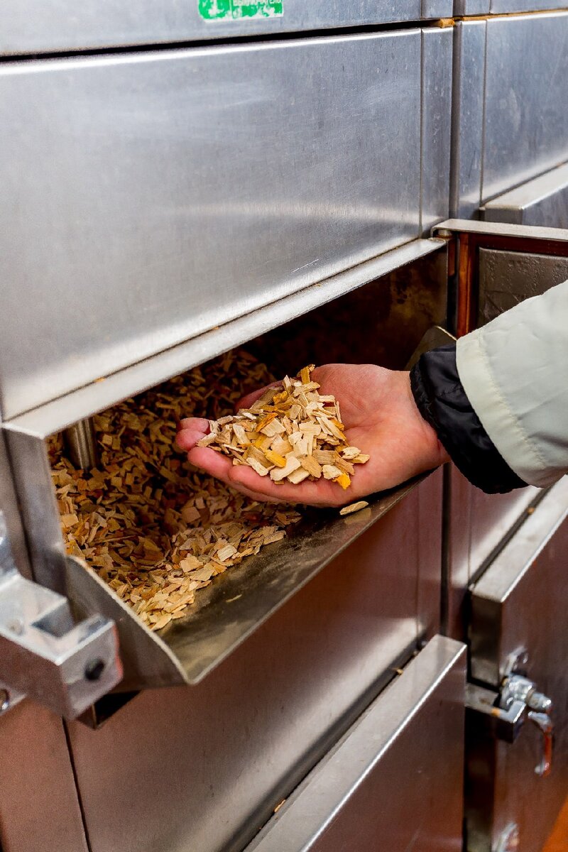 Поэтому, копчение колбасных изделий «Дюбуа» проводится только натуральным способом, с использованием буковой, вишнёвой и ольховой щепы. Процесс получается длительным и трудоемким: на приготовление колбасы уходит до нескольких часов, в зависимости от продукта. Да к тому же во время копчения есть риск, что дым может перейти в открытое пламя. Поэтому температура строго контролируется специальным работником, которые следит за цветом дыма. Например, синий — более холодный, а зеленовато-желтый — более горячий.