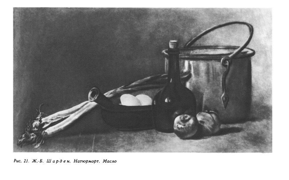 Итак, Шарден выбрал для натюрморта медный котелок, глиняную