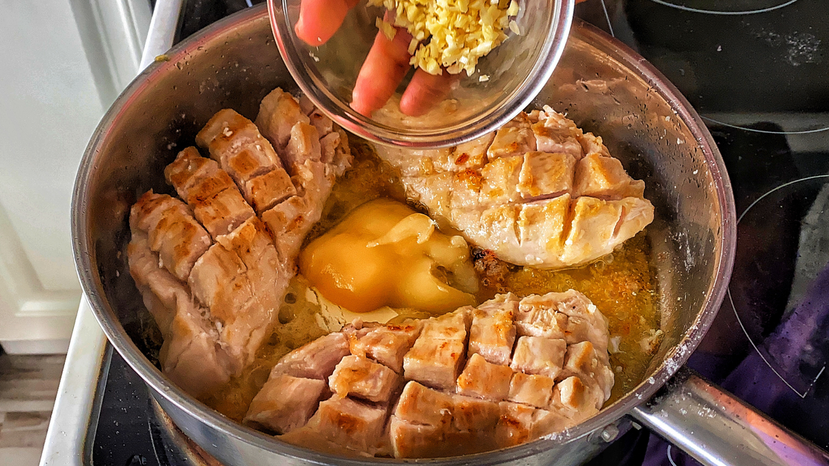 Приветствую вас, дорогие и любимые люди. Этот рецепт можно готовить каждый день. Он реально не надоедает. Дети меня просят, приготовить ещё и ещё. Это восхитительно. И не дорого. Рекомендую. Свалит с ног даже самого привередливого эксперта. Если ты ещё не подписан, обязательно сделай это. Если тебе понравился рецепт, оставь комментарий и поставь лайк этому видео. Делись с друзьями и сохраняй себе чтобы не потерять. Благодарю вас! ⠀ Ингредиенты: -3 грудки -мука -сливочное масло -чеснок -рисовый уксус -соевый соус -мёд -соль и перец по вкусу ⠀ Делаем надрезы на грудке сеткой размером один сантиметр. Растопим сливочное масло в сковороде. Грудку нужно обвалять в муке и дарить по 3-4 минуты с каждой стороны. Далее добавим ещё масла. Следом идёт мёд, чеснок, рисовый уксус и соевый соус. И ещё по 3-4 минуты нужно подержать в соусе с каждой стороны. Все, готово! Подойдёт любой гарнир. ⠀ Приятного аппетита и до новых встреч друзья!