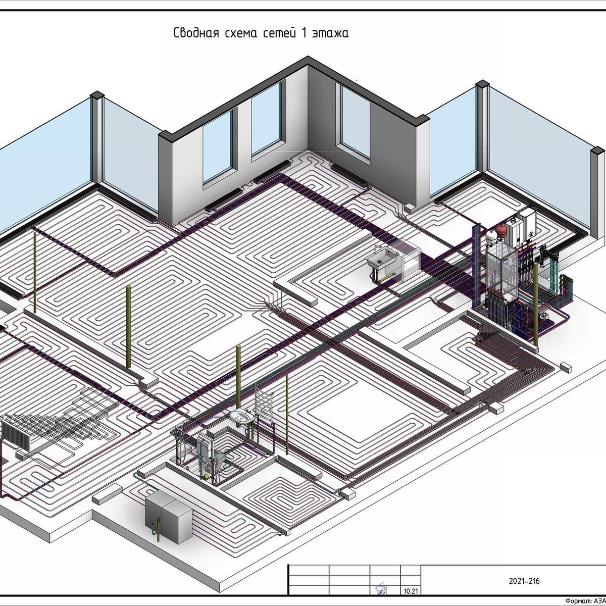 Стоимость проектирования отопления, водоснабжения, теплорасчета, спецификации и котельной 180р за кв.м от отапливаемой площади.