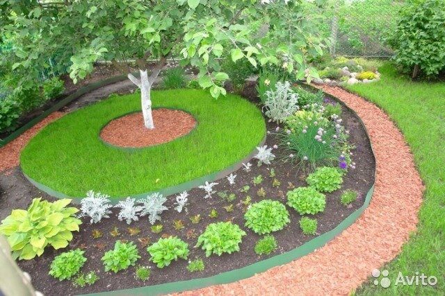 - #Цветник. При помощи ленты можно создавать клумбы разной формы и диаметра. Этот атрибут четко определяет границы цветника, обеспечивает его зонирование. Подобное обрамление придает садовому партеру аккуратный, элегантный, продуманный облик.