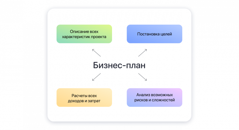 Что такое бизнес план? Бизнес план — это документ, в котором: Поэтому план должен давать ответ на основной вопрос «Стоит ли начинать этот проект и вкладывать в него деньги?». Цели бизнес плана Составляя план, предприниматели ищут способы сократить расходы и увеличить прибыль для стабильного развития компании. А с помощью SWOT-анализа бизнесмены определяют слабые и сильные стороны, а также находят возможности развития и замечают угрозы, которые в будущем нужно минимизировать. Как составить бизнес план? Составить бизнес план можно самостоятельно, а можно его заказать в консалтинговой фирме. Конечно, мы советуем разрабатывать его самостоятельно, чтобы вы могли: Вот несколько советов для создания бизнес плана: Фактически, это подготовка к составлению плана. Его создание займет не один день, ведь нужно собрать и проанализировать огромное количество информации. Подходите к этому очень ответственно, так как от планирования зависит успех вашего дела, в которое вы вкладываете деньги. Структура