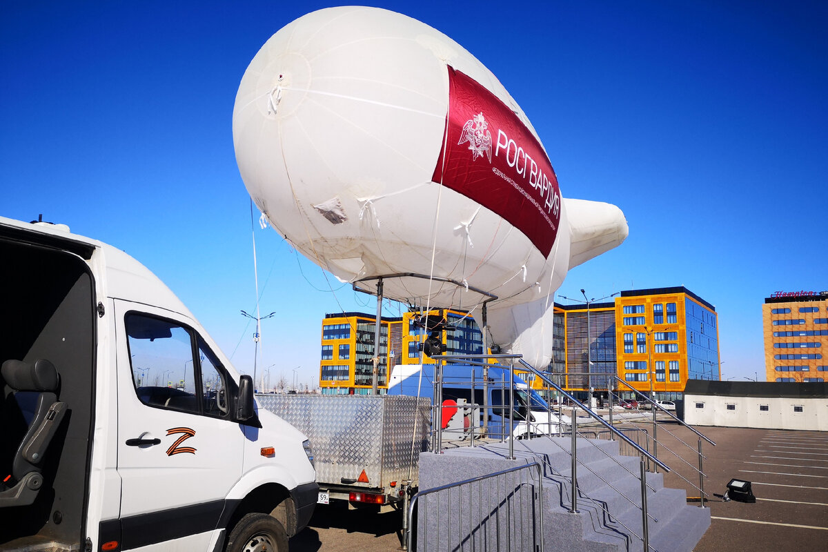 Сотрудники специального авиационного подразделения Главного управления Росгвардии по г. Санкт-Петербургу и Ленинградской области на Международной выставке передовых технологий обеспечения безопасности личности, общества и государства «ЭКСПОТЕХНОСТРАЖ» представили комплекс высотного наблюдения на базе привязного аэростата «ОКО», предназначенный для ведения наблюдения с воздуха во время массовых мероприятий и позволяющий передавать оператору общую панорамную картину.
