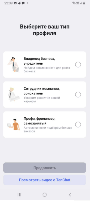 Про Тенчат заговорили многие (в моём окружении), когда Фейсбук перестал работать на территории РФ. Ну и, как говорится, все побежали и я побежал. Зарегистрировалась, чтобы посмотреть, что там. Сначала профиль "повисел" сам по себе несколько дней. Пару раз заходила и видела какой-то сбой, сбоило приложение. Потом подзабыла. Сегодня зашла ещё разок, изучить внимательнее, вдруг что упускаю. Посмотрела что к чему и, как обычно, по итогам написала короткую инструкцию по применению. Регистрация несложная. Привязка к номеру телефона. Проверка смс. Тип профиля. Важно указать ваш статус: предприниматель, фрилансер или соискатель/работаете на кого-то. Без этого вас не пустят дальше. Дальше - фото, имя, разрешение на доступ к вашим контактам. Имя обязательно. Фото можно позже загрузить. Доступ к контактам не обязательно выдавать. Дальше нужно выбрать тему (или несколько), которая вас интересует. Обратите внимание, не выбрано ничего и кнопка "добро пожаловать" серая, т.е. неактивная. Как минимум