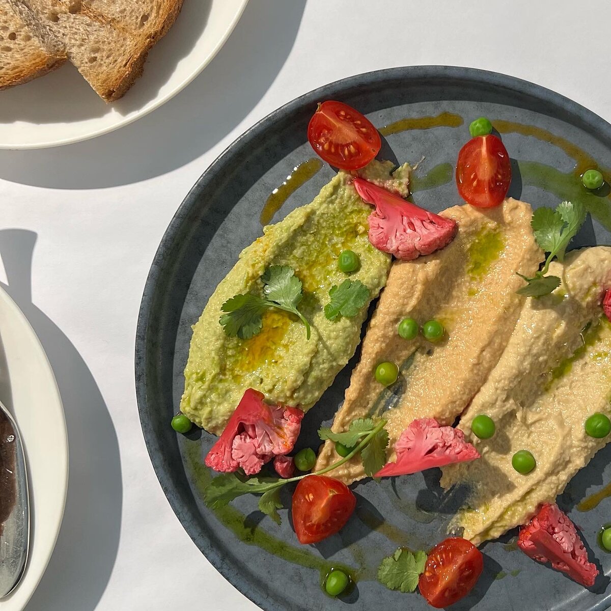 Сейчас идёт Великий пост и в меню многих заведений появилось постное меню. Не исключение и ресторан Avocado Queen. Постное меню здесь небольшое — всего пять позиций. Моё внимание привлёк хумус. Микс хумусов из постного меню по 550 ₽. Подаётся с тостами. Микс состоит из трёх видов хумуса: классического, с кимчи и с горошком. Украшен кинзой, зелёным горошком и порезанными на четыре части помидором черри и соцветием маринованной цветной капусты. Классический хумус хорош, с горошком тоже ничего. А вот самым интересным оказался тот, что с кимчи. Яркий пряный вкус. Острота приходит не сразу, а чуть позже. И она не резкая, а как эхо или раскат грома, доносящийся откуда-то издалека. Если усилить этот хумус кусочком маринованной цветной капусты — получается ещё вкуснее. И о цветной капусте. Я к ней отношусь очень спокойно. Если не сказать больше. Особенно к варёной. А вот маринованная очень понравилась. Постным блюдам традиционно оценку не ставлю. Да и постными эти блюда можно считать