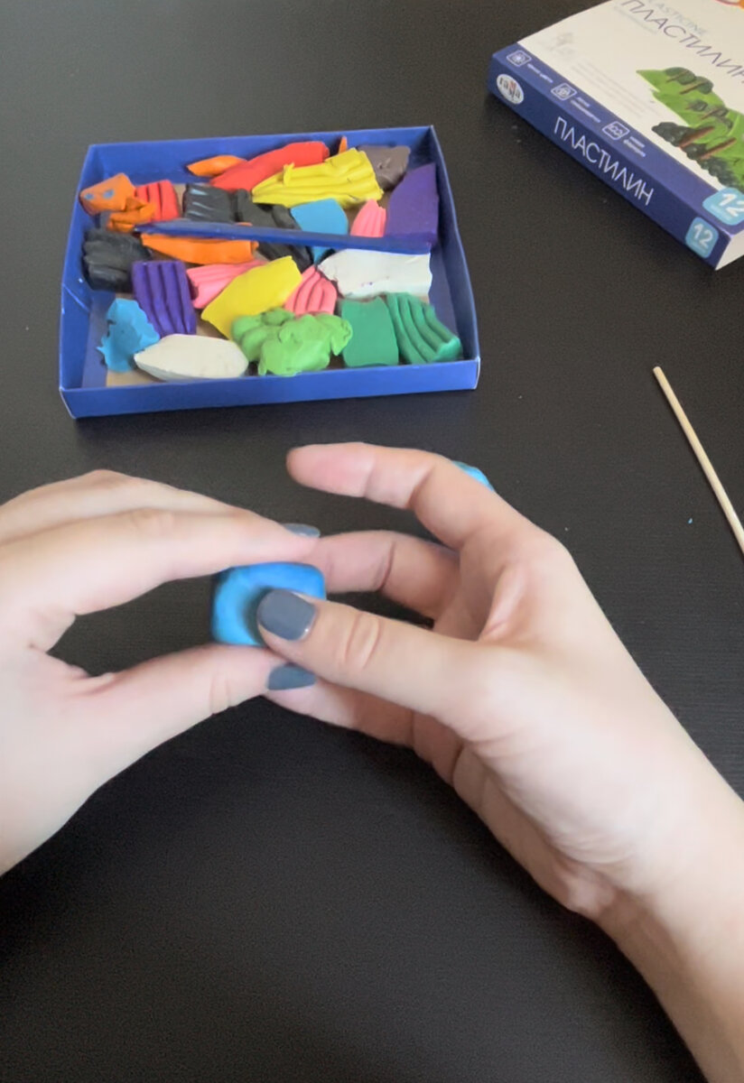 Всем привет! Ловите мастер класс по синему трактору 😇 Фото я скринила с видео, поэтому качество хромает конечно. Если вам ближе формат видео, вы можете посмотреть его в моем профиле. Итак, для начала катаем два синих шарика и делаем из них прямоугольник и квадрат, соотношение примерно как на фото Соединяем между собой, стыки легким движением пальца смазывая между собой Потом делаем четыре колёса. Я делала два больших и два поменьше На них рисуем кружок и полоски, имитирую шины 😁 Крепим к трактору, и начинаем делать окошки. Белый пластилин плющим, вырезаем квадратики, крепим. Тут все легко. Теперь глаза. Два маленьких шарика белого цвета и два крохотных чёрного У меня какой то косоглазый получился, но не стала переделывать, мне понравилось 😊 Дальше начинаем делать кузов, вообще я хотела сначала сделать просто трактор, но потом моя фантазия пошла в разгул Делаем четыре колёса, я так же делала два побольше и два поменьше Ну и не уж то кузов будет пустой, у меня это морковка, у ва