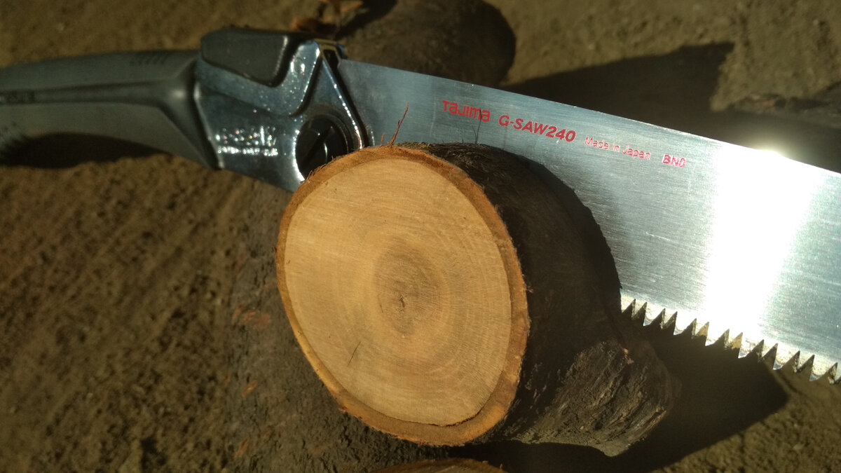 Складная японская ножовка TAJIMA Rapid-Pull G-Saw GK-G240 со стальной рукояткой, покрытая эластомерным, противоскользящим каучуком в комплекте с режущим многофункциональным полотном 9 TPI имеет длину лезвия 240мм и шаг зуба 3мм. Я много попробовал складных пил..но этот продукт японских инженеров лично меня удивил при первом использовании. Насколько я понял японцев это садовая ножовка,но лично для меня стала верным спутником в походах и культурном лесном времяприпровождении.Удобная рукоять нескользит в руке и простой замок как раз то чего нехватало другим подобным инструментам. Основой крепления полотна и рукояти служит винт который удобно подкручивать чем угодно,от ножа до мультитула.Два положения лезвия позволяют расширить функционал пилы. В первом положении лезвие фиксируется за счет специальных пазов у основания полотна Второе положение аналогично фиксирует полотно ,но под другим углом(на сколько я понял это положение для работы на столе или когда бревно лежит на земле) Ну и не сто