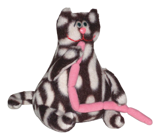Ольга Журавлева 1. Из понравившейся ткани выкраиваем детали выкройки, соблюдая зеркальность в парных деталях и оставляя припуски на швы. 2. Застрачиваем вытачки в туловище, после чего сшиваем все детали попарно, не забыв оставить отверстие для набивки в туловище и сосисках. 3. Делаем технические надрезы в местах изгибов деталей - чтобы после выворачивания швы были ровными. 4. Выворачиваем все детали, набиваем их. 5. Потайным швом зашиваем отверстие в туловище. 6. Тем же потайным швом пришиваем к туловищу все лапы и хвост. 7. Приклеиваем глаза и нос, вышиваем улыбку и брови. 8. Делаем связку сосисок. Для этого не до конца набитую деталь просто связываем, как у настоящих сосисок, не забывая закреплять нить. 9. Пришиваем связку сосисок сначала к одной лапе, потом ко второй. Можно сделать больше или меньше сосисок, по Вашему желанию. 10.Наш кот-хранитель холодильника готов! ВЫКРОЙКА МАСТЕРСКАЯ