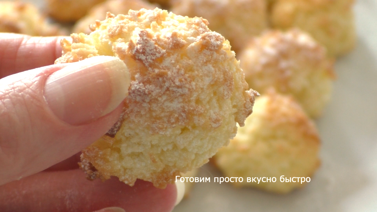 Сегодня у меня кокосовое печенье - это самое гениальное, что можно придумать. Здесь всего 3 ингредиента и время приготовления не более 10 минут. Поверье, получается очень вкусно. Я не люблю кокосовую стружку, но это печенье превзошло все мои ожидания. ЗДЕСЬ еще много простых и вкусных рецептов, заходите, смотрите, подписывайтесь на канал, оставляйте свои комментарии. Для тех кто любит кино короткий видео-рецепт ниже. Беру кокосовую стружку, для первого раза рекомендую взять количество продуктов как у меня, а потом, если понравится рецепт, можно увеличить их в двое. Высыпаю ее в миску. добавляю сахарную пудру (ее можно сделать самим), слегка все перемешиваю, разбиваю сюда одно яйцо. Замешиваю тесто. Затем из полученной массы скатываю шарики Выкладываю их на противень застеленный пергаментной бумагой. У меня получилось 13 шариков, я их делала не очень большими. Как говорится на один укус. Ставлю в разогретую духовку до 200 градусов на 10 минут, у меня были готовы через 8. Готовые печен