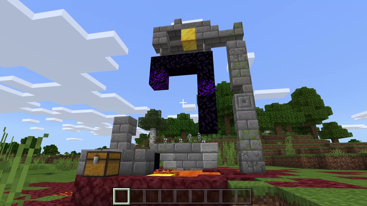Рядом с порталом может находиться сундук и золотой блок. В сундуке могут быть разные золотые предметы и вещи, необходимые для постройки портала, такие как обсидиан и огниво.