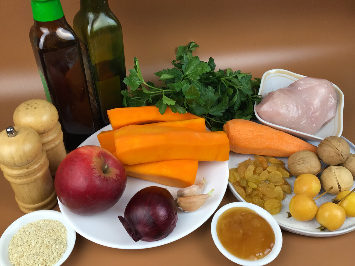 Эти рецепты салатов из тыквы- для тех кто неравнодушен к тыкве. Тыква весьма ценный овощ, содержит много витаминов, поэтому я стараюсь чаще готовить из тыквы различные блюда. Сегодня хочу показать, какие салаты можно приготовить из тыквы. Насколько они простые в приготовлении, очень вкусные и яркие. Из тыквы можно приготовить салат на десерт. Салат из тыквы с фруктами. Тыкву нарезать на кубики, потушить на сковородке с добавлением сливочного масла. Нарезать фрукты( мандарин, яблоко, киви) кубиками. В горячей воде замочить изюм. Все фрукты смешать с тыквой, добавить изюм, заправить жидким мёдом. Освежающий, витаминный салат с ароматом мандарина готов. Салат из свежей тыквы с орехами. Свежую тыкву, морковь натираем на тёрке для корейской моркови. Яблоко тоже натираем на тёрке для корейской моркови, но с более широким лезвием. Орехи и лук нарезаем ножом. Все ингредиенты смешиваем, добавляем зелень( укроп, петрушка), заправляем жидким мёдом с оливковым маслом. Салат готов. Салат из ты