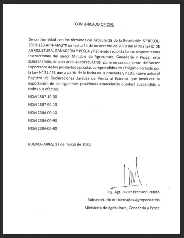 В добавление к моей статье о грядущем недостатке пшеницы на мировом рынке. Аргентина приостановила регистрацию экспортных продаж соевого масла и соевого шрота. Об этом правительство страны заявило, сообщает Reuters. По информации палаты переработчиков и экспортеров масличных (CIARA), правительство Аргентины остановило экспорт продуктов переработки сои из-за планируемого повышения пошлины на экспорт данных товаров с 31% до 33%. «Данный шаг полностью противоречит интересам Аргентины и приведет к снижению валютных поступлений в страну», – говорится в заявлении CIARA. Напомним, что Аргентина является крупнейшим в мире экспортером соевого масла и соевого шрота и такие меры могут привести к скачку цен в мировом соевом комплексе, которые уже существенно выросли на фоне конфликта на Украине. По данным экспедиторского агентства NABSA, в 2021 г. средний ежемесячный объем экспорта соевого шрота из Аргентины составлял 1,5 млн тонн, масла – 300 тыс. тонн.