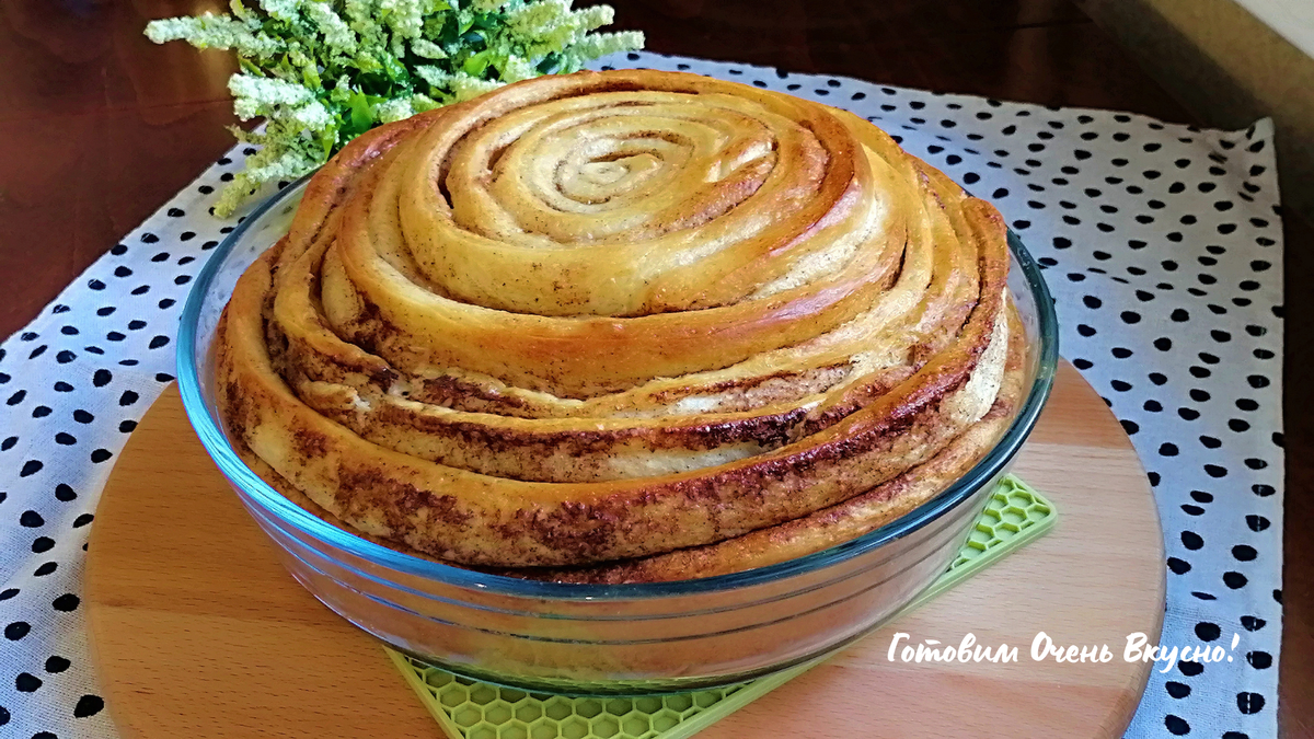Привет, друзья! Сегодня хочу поделиться с вами рецептом одного из самых вкусных сладких пирогов. Это нежный, мягкий сдобный пирог с неповторимым ароматом корицы. А готовить мы его будем из самых простых продуктов. Подробный видео рецепт и список продуктов для приготовления можно посмотреть в конце статьи ⤵️ Итак, готовим большой синнабон 👩🍳 1. Прежде всего займемся приготовлением дрожжевого теста. Соединим 80 мл теплого молока, 1 ч.л. сахара. Хорошо перемешаем чтобы сахар растворился. Всыпаем дрожжи, хорошо перемешаем и оставляем на 10 минут. Дрожжи должны немного вспениться. 2. В глубокой миске соединяем яйца, сахар и соль. Хорошо перемешиваем венчиком. 3. Добавляем оставшееся теплое молоко. Перемешиваем венчиком. 4. Добавляем растительное масло и перемешиваем. 5. А теперь растопленное сливочное масло и также перемешиваем. 6. Размешиваем дрожжевую смесь и добавляем ее к яичной смеси. Хорошо размешиваем венчиком. ОБРАТИТЕ ВНИМАНИЕ! Я замешиваю тесто в хлебопечке. Для замеса теста