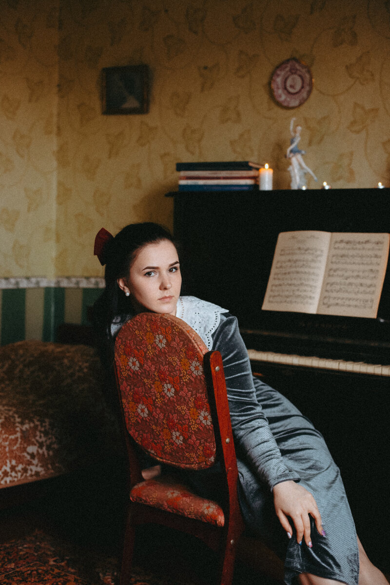Можно ли считать заимствование идеи для фотосессии воровством? Мне до сих пор не по себе, потому что абсолютно все для этой съёмки «позаимствовала». Идея, образ, локация и даже позы, - все это очень похоже на идею найденную мной в интернете. Но когда я сравниваю кадры, то понимаю - эта фотосессия более личная. Начать с того, что в качестве модели - автор статьи собственной персоной. И локация у нас не безликая студийная, а уникальная - домашняя. Бабушкино фортепиано и любимый сборник «Времена года» Чайковского на нем - это раз. Прабабушкин портрет на стене и ему в компанию тарелочка с профилем вышеуказанного композитора - это два. Нотный сборники по которым училась музыке моя мама и балерина из моей коллекции фарфоровых игрушек это три. Каждая вещь символична и несёт в себе историю трёх поколений. Благодаря таким деталям я уже не считаю себя «воровкой». И пусть этот символизм только для меня, я считаю что нам с Лизой (фотограф, у которой получилось все запечатлеть) удалось создать неч