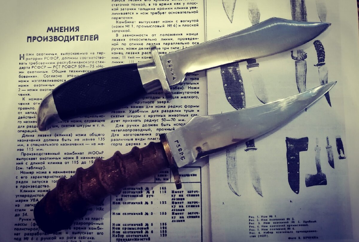 Перелистывая старые журналы «Охота и охотничье хозяйство». Я наткнулся на очень интересную публикацию «Охотничий нож. Каким ему быть». В этой статье главный инженера производственного комбината МООиР Степченко дал разъяснение по поводу конструкции охотничьих ножей и ответил на многие вопросы касаемо своих изделий. Как конструируются охотничьи ножи? Согласно Республиканскому стандарту РСФСР 509-75 ножи делились на два типа: Раньше я придерживался мнения, что все ножи ПК МООиР были ножами общего назначения (исключением для меня был только «Разделочный» нож). Но оказывается, я сильно ошибался (каюсь), большинство их ножей были именно ножами специального назначения. Это все клинки в диапазоне от 115 мм до 135 мм. ПК МООиР подразделял эти изделия в зависимости от параметра клинка на три условных типа: Там было еще немного рассуждений о форме рукояти и заточки клинка. А в конце просто гениальное заключение: многое зависит от умелого навыка в работе с ножом. Другие публикации автора: Нож ПК