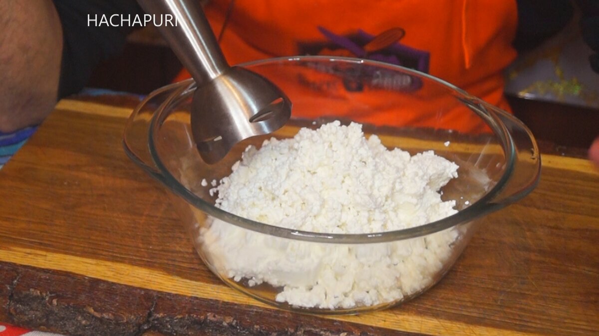 Подготовленный творог можно несколько раз пропустить через сито, но быстрее будет прокрутить через погружной блендер. Необходимо добиться кремообразной консистенции.