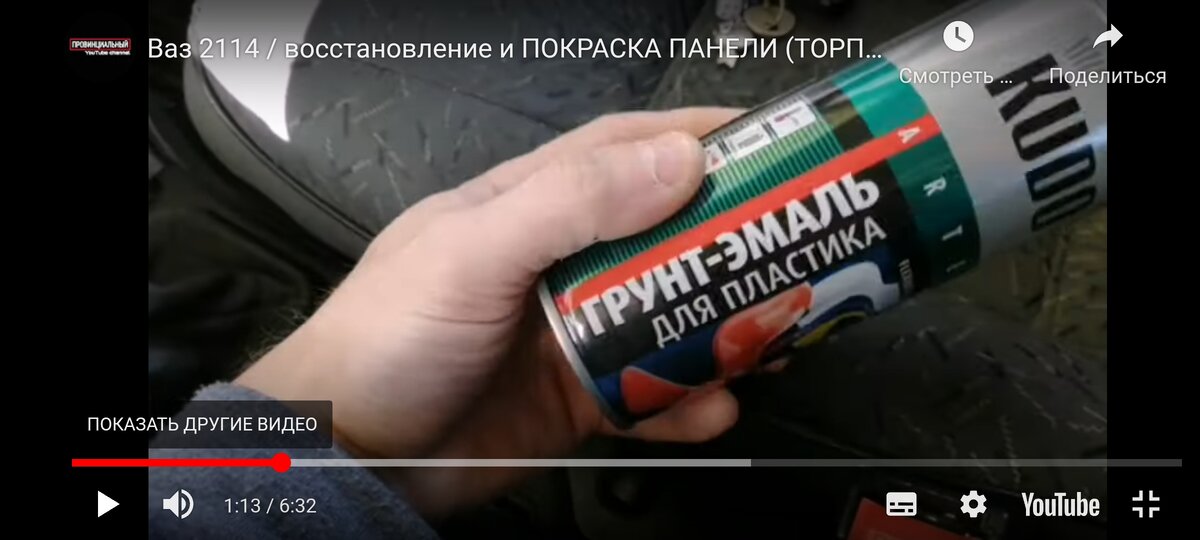 Насмотрелись значит мы видео в YouTube, как восстановить торпеду (переднюю панель) в машине. Определили, что это можно сделать всё самостоятельно и быстро, за 250 рублей примерно и пошли на поиски материалов для процедуры. Нам необходимо было найти малярный скотч и газеты, для заклеивания поверхностей, которые не будут покрашены. Это сделали легко и скотч стоит всего 50 рублей в строительном магазине, чего не скажешь о баллончике "Грунт-эмаль для пластика" фирмы KUDO. Не тут то было. Оказалось найти "Грунт-эмаль для пластика" любой фирмы - это длительный и очень сложный процесс. Заехали в 2 строительных магазина, одних из самых крупных в нашем городе и смогли найти только брунт в баллончике, цвет которого не сильно подходит по цвету к нашей торпеде. Смотрите сами на фотографии ниже. Самое интересное, что Грунт в спрее именно для пластика найти оказалось невозможным заданием. Чтобы вы понимали, то цвет торпеды (панели) нашей машины выглядит вот таким образом, фотография прилагается ниже